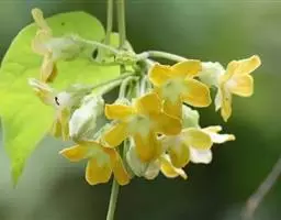 夜来香 Merr.)是夹竹桃科夜来香属柔弱藤状灌木;小枝被柔毛,黄绿色,老枝灰褐色,渐无毛,…
