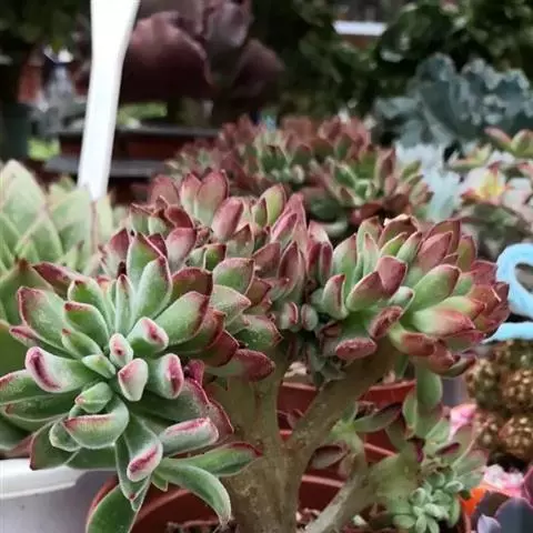 蓝石莲是景天科、拟石莲花属的多肉植物。茎部粗壮,成熟植株茎部木质化。叶片莲座型密集排列,株径不会很大,…