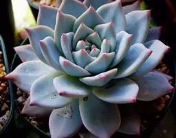 吉娃莲,景天科拟石莲花属,别名:吉娃娃,吉娃莲,植株小型,无茎的莲座叶盘非常紧凑。卵形叶较厚,带小尖,…
