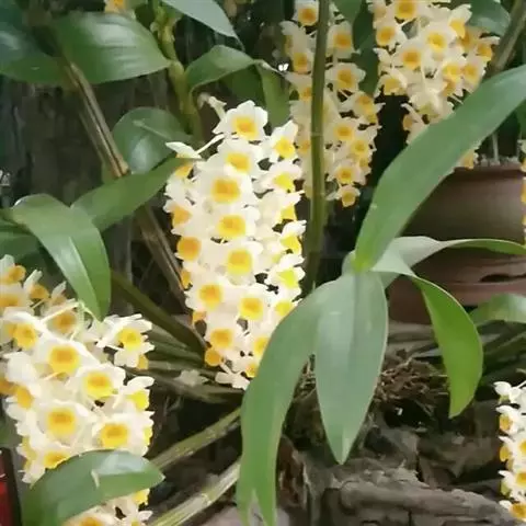 球花石斛,是兰科石斛属的多年生附生草本。茎直立或斜立,圆柱形,粗壮,基部收狭为细圆柱形,不分枝,…