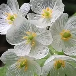 山荷叶属为多年生草本,有匍匐状、粗厚、具节的根茎;根生叶1枚,大,盾状,分裂,生于粗厚的柄上其状如伞,…