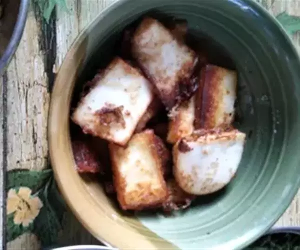 美食介绍:台湾萝卜糕,一种台湾常见的美食。