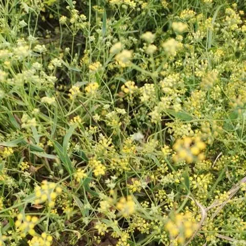 总苞片1-2或无;伞辐4-9,挺直,不等长,长0.5-4厘米,有明显的棱;小总苞片6-9,卵形至阔卵形,很少披针形,顶端有小短尖头,长6-10毫米,宽3-5毫米,5-7脉,黄绿色,长过小伞形花序半倍至一倍;小伞花序直径1-2厘米,花柄长1.5-2.5毫米;花瓣黄色,有时背面带淡紫红色;花柱基干燥时紫褐色。