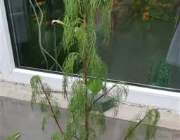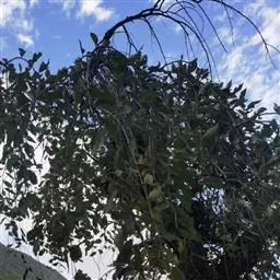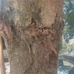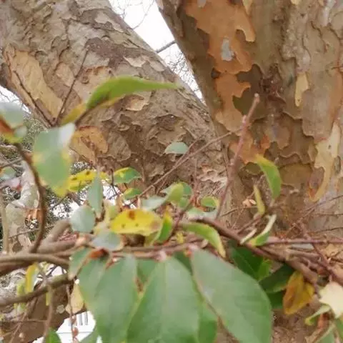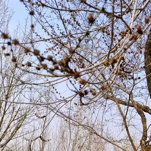 树皮暗灰色,粗糙,不规则纵裂。幼树枝条直立,且被白色毛;老树枝条先端下垂,有时木栓质发达成为瘤状。…