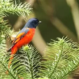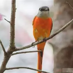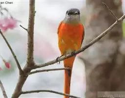 灰喉山椒鸟:共有8个亚种。体长18-22厘米。雄鸟头部和背亮黑色,腰、尾上覆羽和下体朱红色,…