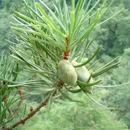 金钱松结果大小年明显,一般相隔3~5年,有的甚至7年才能丰产I次。幼树球果内的种子多为空粒,采种应选择二十年生以上生长旺盛的母树。10~11月采种,在室内摊放后熟,每100千克球果可得净子8~12千克。种子发芽率一般在60%以上。育苗地应先掺人金钱松林下土壤,以便使菌根带人。2月上旬至3月上旬播种,播前将种子放人40cc温水中(自然冷却)浸一昼夜,条播或撒播,每亩播种量12千克。播后用有菌根的土覆盖,以不见种子为度,上盖稻草或其他覆盖物,通常20天后发芽出土,应及时揭草。苗期需半阴环境,在晴天可喷波尔多液预防病害。幼苗期因不耐干早,水肥管理宜勤。9月前后,进人旺盛生长期,更要加强管理,促使快速生长。在正常管理下,当年生苗高可达10~15厘米,可留床一年,用于城郊绿化的须移植培大。因金钱松与菌根有共生关系,故在新地区繁殖栽培务须拌人菌根土。