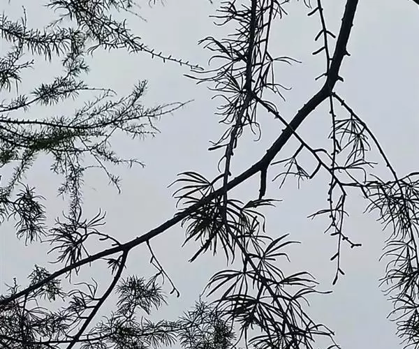 银杉:树皮暗灰色。大枝平展,小枝节间的上端较粗,或少数侧生小成距状。叶枕近条形,稍隆起,…