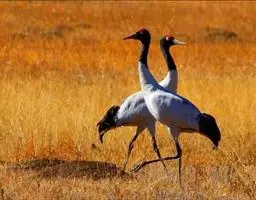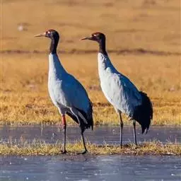黑颈鹤:是鹤科、鹤属的大型涉禽,体长110-120厘米,体重4-6千克。颈、脚甚长,通体羽毛灰白色,…