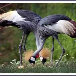 东非冕鹤是大型涉禽。体长127厘米。额部向外凸出,有乌黑色绒羽,…