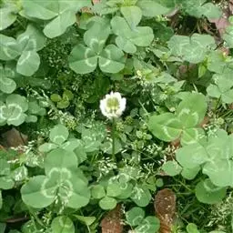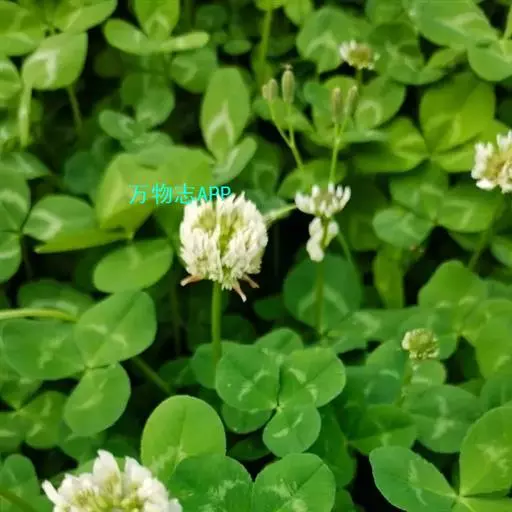 白车轴草,豆科车轴草属的多年生草本植物,茎贴地匍匐;叶柄直立,小叶心形,边缘具细齿,叶脉明显,…