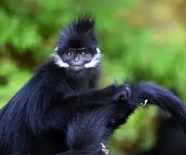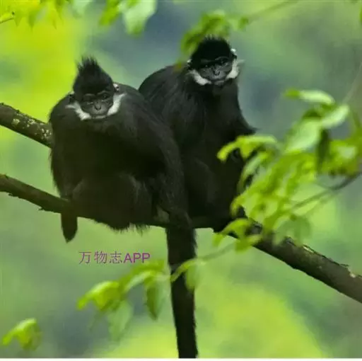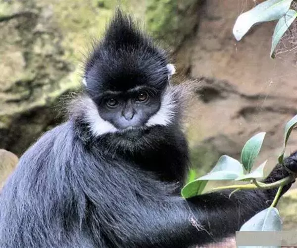 黑叶猴(学名:Trachypithecus francoisi):体长约50-60厘米,头小,尾巴较身体长,细长的四肢;头顶有直立的毛冠,体背毛比腹面的毛长而密,臀疣较大;全身黑色有光泽,耳基至两颊有白毛,手足均为黑色。以果实、种子、嫩芽和叶柄为主要食物,也吃鲜枝嫩叶、花苞、竹笋、小鸟及昆虫,食物可达80余种。
