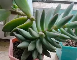 灯美人是景天科的园艺品种,多肉植物。叶片近柱状,丛生,在日照时间长、温差大的环境下会呈现橙粉色。