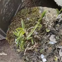 风兰 H.H.Hu):植株高8-10厘米。茎长1-4厘米,稍扁,被叶鞘所包。叶厚革质,狭长圆状镰刀形。…