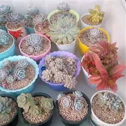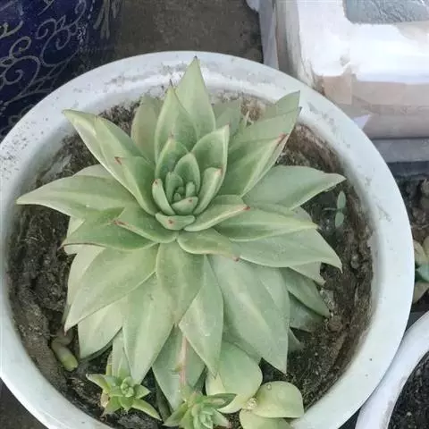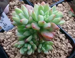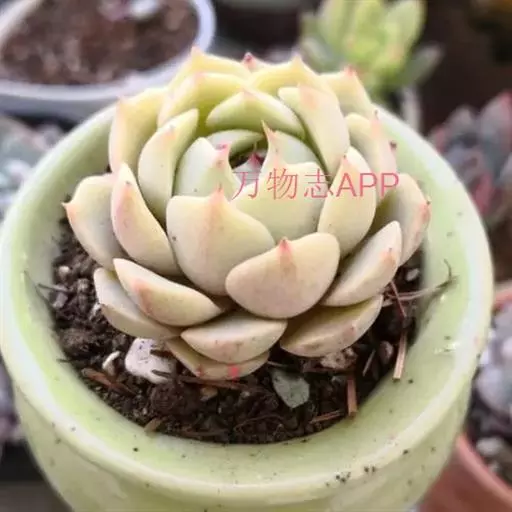 大和锦是景天科拟石莲花属的多肉植物。肉质叶排成紧密的莲座状,广卵形至散三角卵形,背面突起呈龙骨状,…