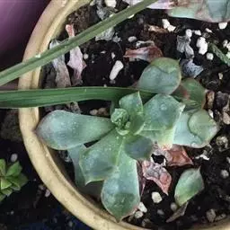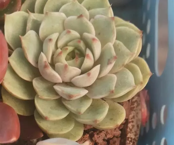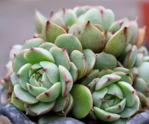 小红衣是景天科、拟石莲花属的一种多肉植物。叶片匙形,扁平细长,叶表具白粉,有明显的半透明边缘,…