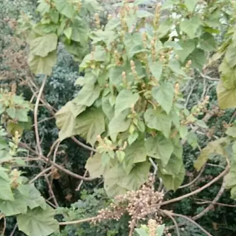 乔木高达10米以上,树冠宽圆锥形,全体具星状绒毛;小枝褐色,有凸起的皮孔。叶片通常卵状心脏形,有时具不规则的角,长达34厘米,顶端渐狭长而锐头,基部心脏形或近圆形,上面毛不久脱落,下面密被无柄的树枝状毛。