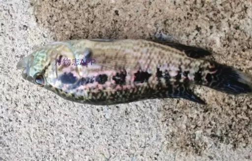 淡水石斑鱼图1 淡水石斑鱼体型为纺锤型,口上位。其躯干两侧各有8条黑纹,垂直黑条纹中央有较黑的色素块。胸鳍淡黄色,腹鳍、背鳍、臀鳍皆具有黑色条纹,尾鳍黑色条纹与身体垂直。除黑白条纹外,成鱼体表略带黄色,体色随外界水环境及生殖期间起适应性变化。繁殖时,雄鱼体色较黑,雌鱼体色较淡,并带有黄色,腹鳍胸位,尾鳍圆尾型,具生殖突。幼鱼眼眶为红色,成鱼眼眶为银黄色。鳞片为圆鳞,较大。侧线鳞断续。鳞式为:背鳍(D)XVIII-12,臀鳍(A)VII-10,腹鳍(V)I-5,胸鳍(P)1-4。
