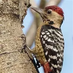 小斑啄木鸟,是啄木鸟科、啄木鸟属的小型鸟类,体长14-18厘米。额和颊白色,头顶雄鸟红色,雌鸟黑色。…