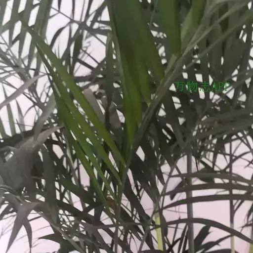 散尾葵(学名:Chrysalidocarpus lutescens H. Wendl.):又名黄椰子、紫葵。棕榈科、散尾葵属丛生常绿灌木或小乔木。茎干光滑,黄绿色,无毛刺,嫩时披蜡粉,上有明显叶痕,纹状呈环。叶面滑细长,羽状全裂,长40~150cm,叶柄稍弯曲,先端柔软。