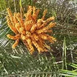 花序生于叶鞘之下,呈圆锥花序式,长约0.8米,具2-3次分枝,分枝花序长20-30厘米,其上有8-10个小穗轴,长12-18厘米;花小,卵球形,金黄色,螺旋状着生于小穗轴上;雄花萼片和花瓣各3片,上面具条纹脉,雄蕊6,花药多少丁字着;雌花萼片和花瓣与雄花的略同,子房1室,具短的花柱和粗的柱头。