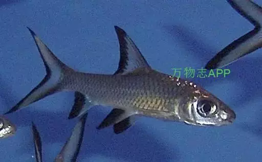 身长可达30余厘米,亚纺锤形。各鳍端均呈尖形,背鳍、腹鳍、臀鳍三角形,尾鳍深叉形。体色银色,腹部泛白,各鳍微泛黄,明显特征是:背鳍、腹鳍、臀鳍和尾鳍外缘均有黑色宽边,黑边内侧为淡灰色宽带,十分醒目。