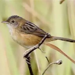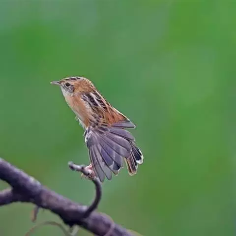 棕扇尾莺是扇尾莺科扇尾莺属的小型鸟类,体长9~11厘米。上体栗棕色具粗著的黑褐色羽干纹和棕白色眉纹,…
