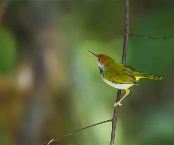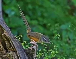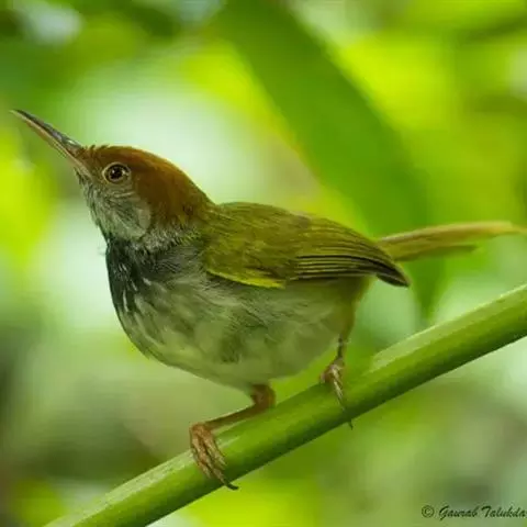 黑喉缝叶莺:体长11.5厘米,是一种小型的顶冠棕色、腹部白色的莺。尾甚长而常上翘,臀黄色,…