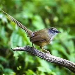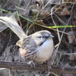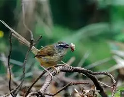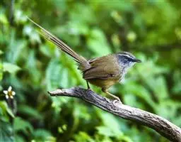 黑喉山鹪莺:体长16厘米,是一种长尾的褐色鹪莺。具明显的白色眉纹及形长的尾。特征为胸具黑色纵纹。…