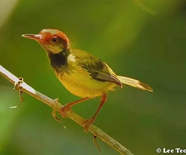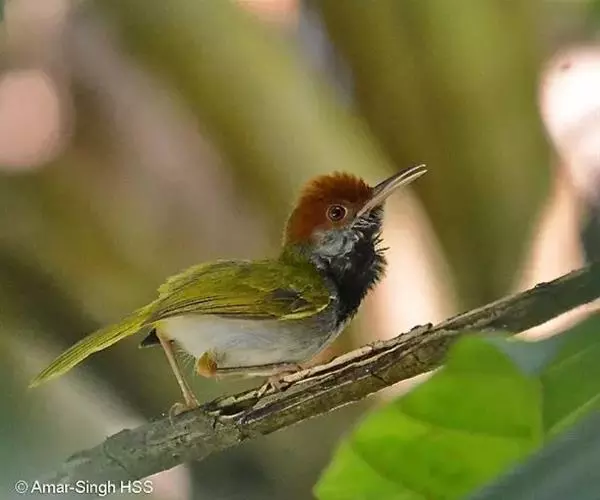 黑喉缝叶莺(学名:Orthotomus atrogularis):体长11.5厘米,是一种小型的顶冠棕色、腹部白色的莺。尾甚长而常上翘,臀黄色,具特征性的偏黑色喉(亚成鸟喉无黑色),上体橄榄绿色,头侧灰色。雌鸟色暗,头少红色且喉少黑色。与长尾缝叶莺的区别在后顶冠亦为棕色,无白色眉纹,背上绿色较重,尾下覆羽及腿部黄色。虹膜褐色;上嘴黑,下嘴偏粉;脚粉灰色。