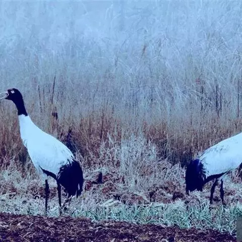 黑颈鹤:是鹤科、鹤属的大型涉禽,体长110-120厘米,体重4-6千克。颈、脚甚长,通体羽毛灰白色,…