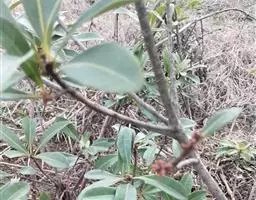 常绿灌木,成长缓慢,树高4-15米,枝梢分枝与成枝能力较强,树姿开张,树冠为自然圆头形。根系分布较浅,深度小于70厘米,以须根为主。树皮细薄,呈灰白色或浅褐色至微红色,具有缓慢脱落特性;果实采收后至萌发新芽期间,老旧树皮会剥落。叶对生,叶柄短,有茸毛,叶片革质,深绿色有光泽,披针形或椭圆形。