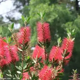 红千层是桃金娘科红千层属的常绿小乔木植物。红千层树皮坚硬,灰褐色,嫩枝有棱,初时有长丝毛,…