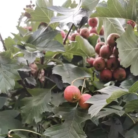 催芽和播种:新疆北疆地区通常采用秋季播种,净种后立即播种、灌水,冬季降雪覆盖,翌年出苗整齐,生长良好。播种前提前翻耕土地,打埂作床,按0.5米行距开沟,撒播种子,因土质不同,播种量2-3千克,沙壤土疏松,播种后覆土厚度1.5厘米,踏实;粘土地采用羊粪、锯屑和腐植质混合播种后,覆盖厚度2厘米,踏实。灌水,冬季降雪覆盖,翌年3月积雪融化,4月出苗。经过灌水、松土除草、2次间苗(留优去劣)后,保存苗木10000-15000株/亩,1年生苗高0.4-0.7米,2年生苗高1.2-2.3米。若翌年春季4月播种,秋季将洗净的种子立即混湿沙坑藏催芽,翌年4月待1/3的种子裂咀后播种。山楂种子休眠期较长,不经长时间混湿沙催芽的种子,春播后当年很少发芽出苗。