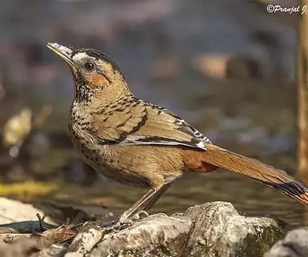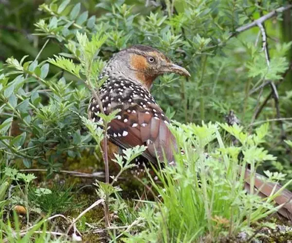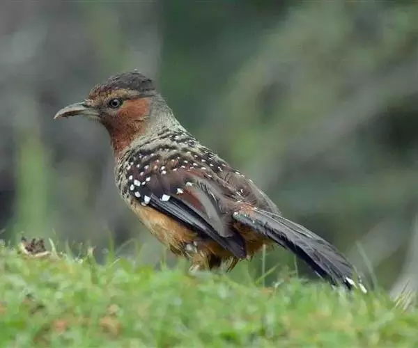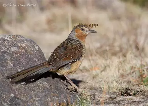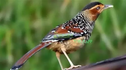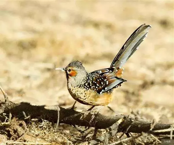 野外鉴别特征:中型鸟类,体长32-36厘米。额至头顶黑褐色,背栗褐色满杂以白色斑点,斑点前缘或四周还围有黑色。初级覆羽、大覆羽和初级飞羽具白色端斑。尾特长,均具黑色亚端斑和白色端斑。颏、喉棕褐色,喉具棕白色端斑和窄的黑色亚端斑,其余下体棕褐色。野外特征极明显,容易识别。