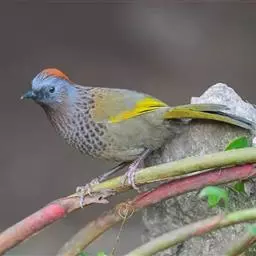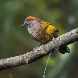 红头穗鹛是雀形目画眉科伪穗鹛属鸟类。成鸟额至头顶或至枕部为棕红色;额基和眼先淡灰黄色;眼圈隐隐泛黄白色;颊和耳羽灰黄色缀有橄榄褐色;其余上体连同翼和尾的表面为橄榄绿褐色;飞羽和尾羽暗褐色,外缘沾茶黄色;下体颏、喉和胸浅灰黄色,具细黑羽干纹;腹和尾下覆羽橄榄褐绿色;腋羽和翼下覆羽淡灰黄色;虹膜棕红色;上喙角褐色,下喙暗黄色;脚黄褐色。红头穗鹛分布于亚洲东南部地区;在中国分布于秦岭及以南的广大地区,包括长江流域、华南、华中和西南地区。栖息于山地森林中。常单独或成对活动,有时也结小群或与棕颈钩嘴鹛等其他鸟类混群,在林下灌丛间来回跳跃穿梭。主食鞘翅目、鳞翅目、直翅目、膜翅目、双翅目和半翅目等昆虫,偶食少量植物种实。繁殖期在4-7月,营巢于茂密灌草丛或竹丛中。窝卵数4-5枚,卵白色且具棕斑,雏鸟晚成;雌雄亲鸟轮流孵卵,共同育雏。红头穗鹛为食虫益鸟,被列入中国林业局2000年8月1日发布的《国家保护的