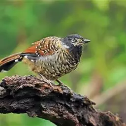 红头噪鹛中型鸟类,体长22~28厘米。头顶棕红色,眼先、脸、颏、喉黑色,上体橄榄色或棕橄榄褐色,…