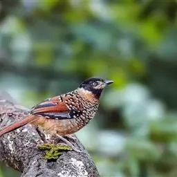 蓝翅噪鹛:噪鹛科、彩翼噪鹛属动物。中型鸟类,体长22-25厘米。上体棕橄榄褐色密被黑色鳞状斑,…