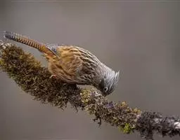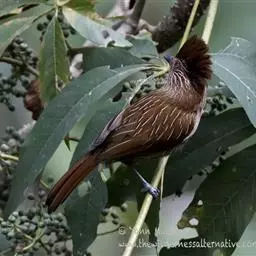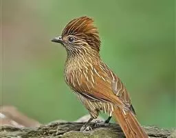 条纹噪鹛是画眉科、噪鹛属中型鸟类,体长28-32厘米。头具短的羽冠,上体栗褐色,飞羽外翻蓝灰色。…