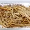 1、将金针菇切一刀,和笋丝一起焯一下,倒出沥净水分;