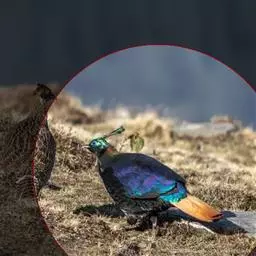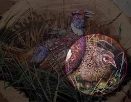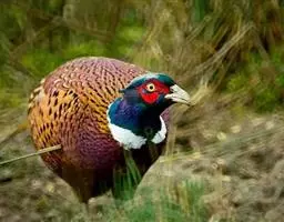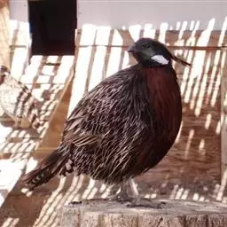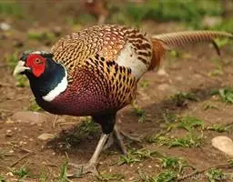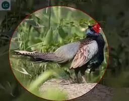 雉鸡(学名:Phasianus colchicus):共有30个亚种。体形较家鸡略小,但尾巴却长得多。雄鸟和雌鸟羽色不同,雄鸟羽色华丽,多具金属反光,头顶两侧各具有一束能耸立起而羽端呈方形的耳羽簇,下背和腰的羽毛边缘披散如发状;翅稍短圆;尾羽18枚,尾长而逐渐变尖,中央尾羽比外侧尾羽长得多,雄鸟尾羽羽缘分离如发状;雄鸟跗跖上有短而锐利的距,为格斗攻击的武器,近年来还发现距的长度与其所拥有的配偶数量明显相关,是雌鸟选择配偶的一个重要标准。