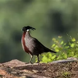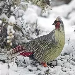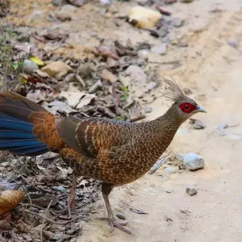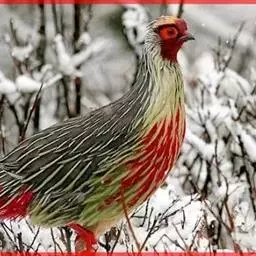 血雉雉科血雉属鸟类,别名血鸡、松花鸡,血雉的雄鸟大覆羽、尾下覆羽、尾上覆羽、脚、头侧、腊膜为红色,…