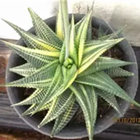 条纹十二卷 Haw.)是芦荟科十二卷属植物,为多年生肉质草本植物。植株高度10-15厘米,其呈莲座…