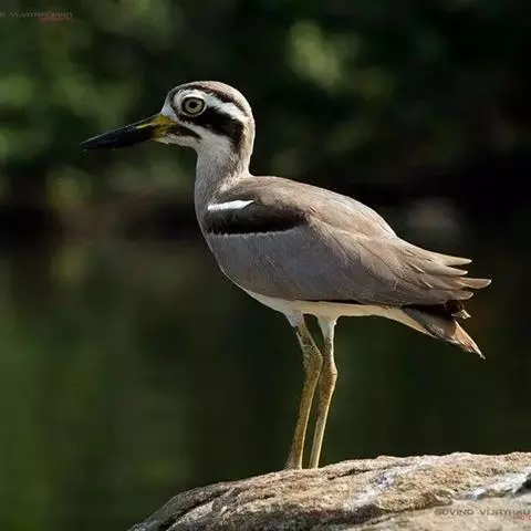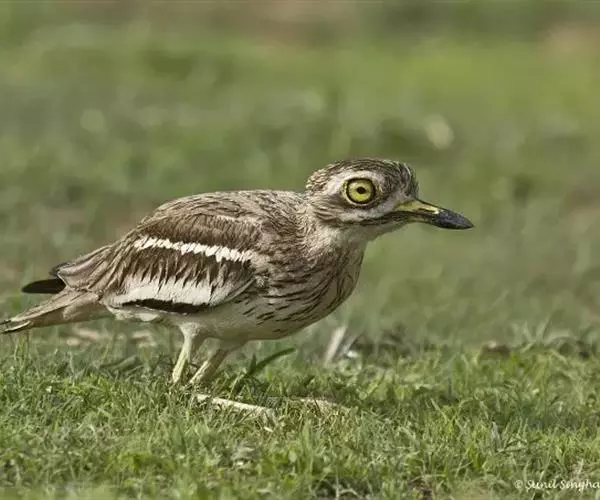石鸻虹膜黄色,眼非常大,嘴黑色,基部黄色,脚黄色或绿灰色。