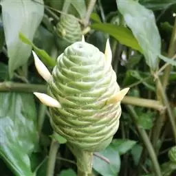 密苞山姜是姜科,山姜属多年生草本植物,株高可达1.5米。叶片椭圆状披针形,顶端渐尖,并具细尾尖,基…