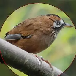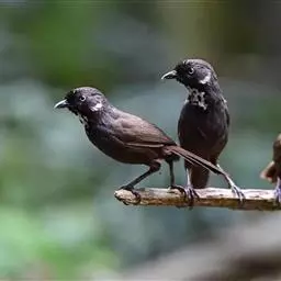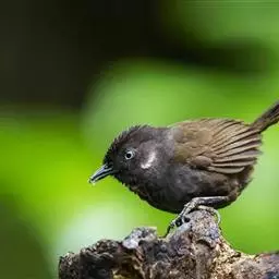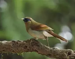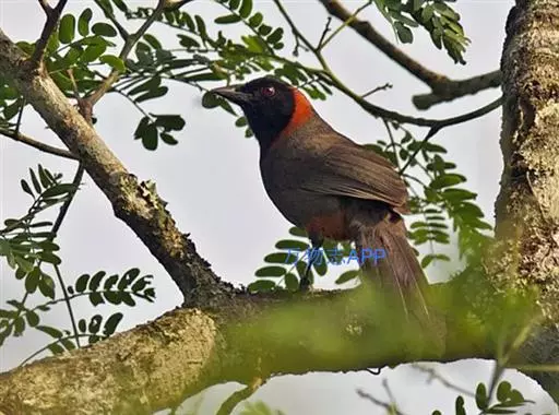 黑顶噪鹛:中型鸟类,体长24-26厘米。前额、脸、颏、喉黑色,头顶黑褐沾棕或深棕橄榄褐色,…