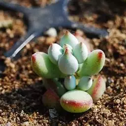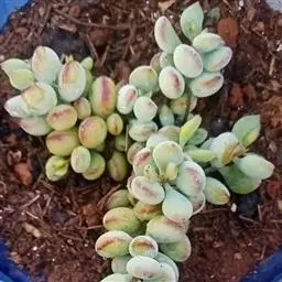 乒乓福娘,植株叶片退化成扁卵状,植株为直立的肉质灌木,能够长高。叶片对生,扁卵型至圆卵形,叶片顶端…