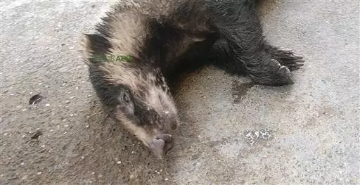 猪獾(学名:Arctonyx collaris),别称沙獾,山獾,是鼬科、猪獾属的哺乳动物。猪獾体型粗壮,吻鼻部裸露突出似猪拱嘴,四肢粗短,头大颈粗,耳小眼也小,尾短,其整个身体呈现黑白两色混杂,背毛黑褐色,胸、腹部两侧颜色同背色,中间为黑褐色。四肢色同腹色。尾毛长,白色。