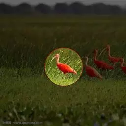 美洲红鹮(学名:Eudocimus ruber)羽色鲜红,它们总是成群的在沙滩、咸水湖、红树林和沼泽里觅食,并一起在沼泽中的大树上过夜,因此十分显眼。它们的喙细长弯曲,以泥潭中的蟹类、软体动物和沼泽地中的小鱼、蛙和昆虫等小动物为食。它们的叫声高昂而忧伤。飞行时,身影如同一团团跳跃的火焰,鲜红而热烈,除了长喙呈灰黑色外,浑身上下包括腿和脚趾都呈鲜红色 ,这就是世界上颜色最红的鸟类。是栖息在南美洲热带及特立尼达的一种朱鹭。它们是特立尼达的国鸟,与棕臀雉冠雉一同在特立尼达和多巴哥国徽上出现。 具有极高的观赏价值。
