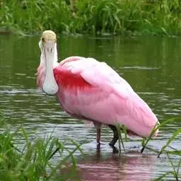 粉红琵鹭:体高87厘米,翼展127厘米,体重1300克,寿命10年。是一种大型涉禽。脚很长,喙长而…