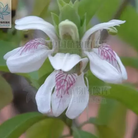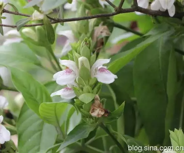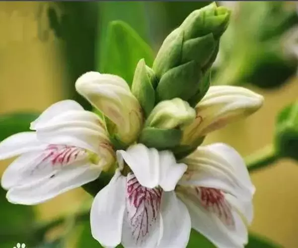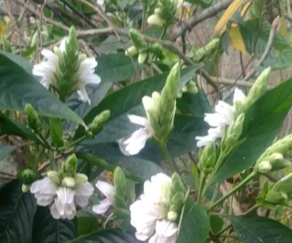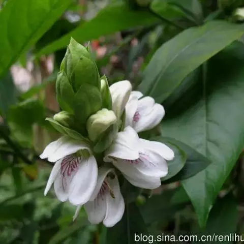 鸭嘴花(学名:Adhatoda vasica Nees)为爵床科鸭嘴花属下的一个种。灌木,株高2-3m,茎节膨大,幼枝有毛,叶对生,矩圆状披针形或矩圆状椭圆形,端尖,全缘,穗状花序顶生或腋生,苞片卵形,花冠唇形,白色,有紫色线条,花期春、夏。